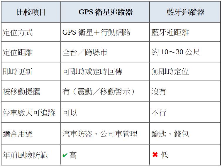藍牙追蹤器是「找遺失物」,GPS 追蹤器是「汽機車即時定位」。